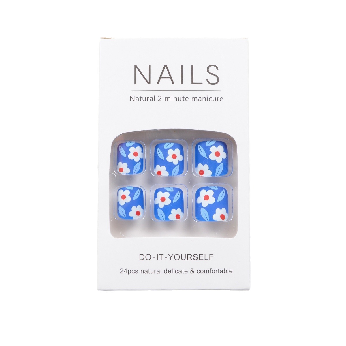 Be the first to review “Blue Toenails, White Flower Nail Patches, Frosted Fake Nails, Removable”
