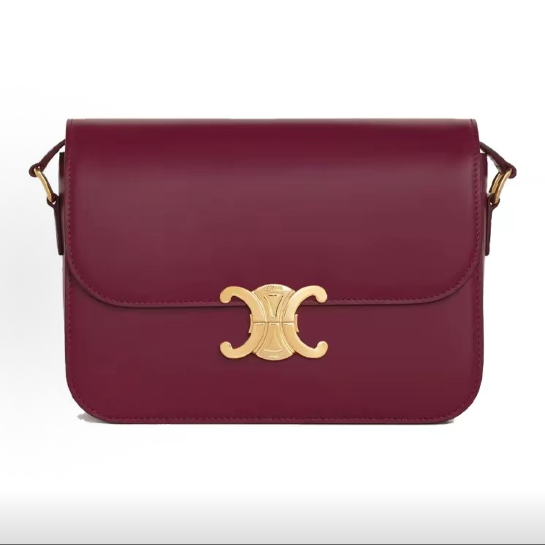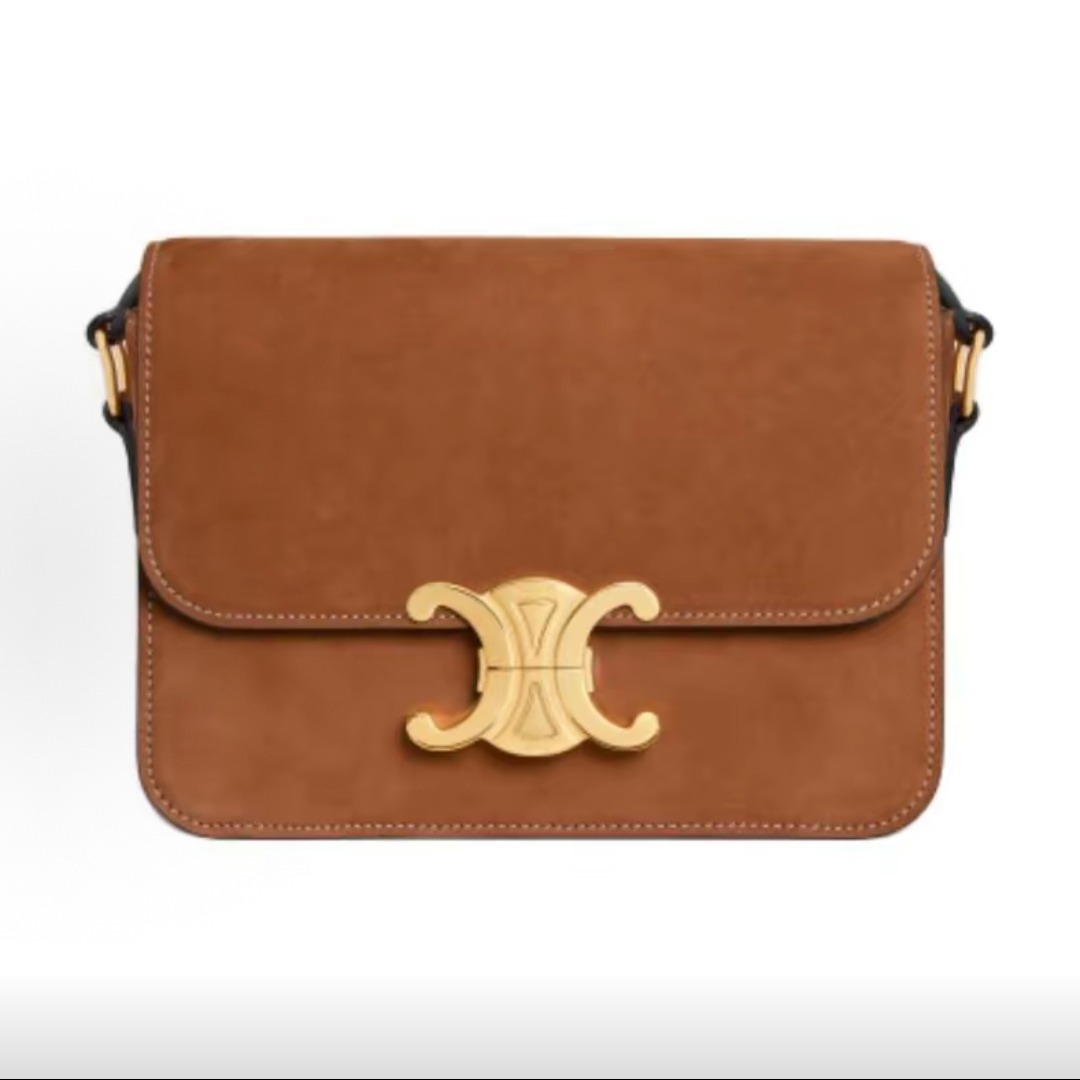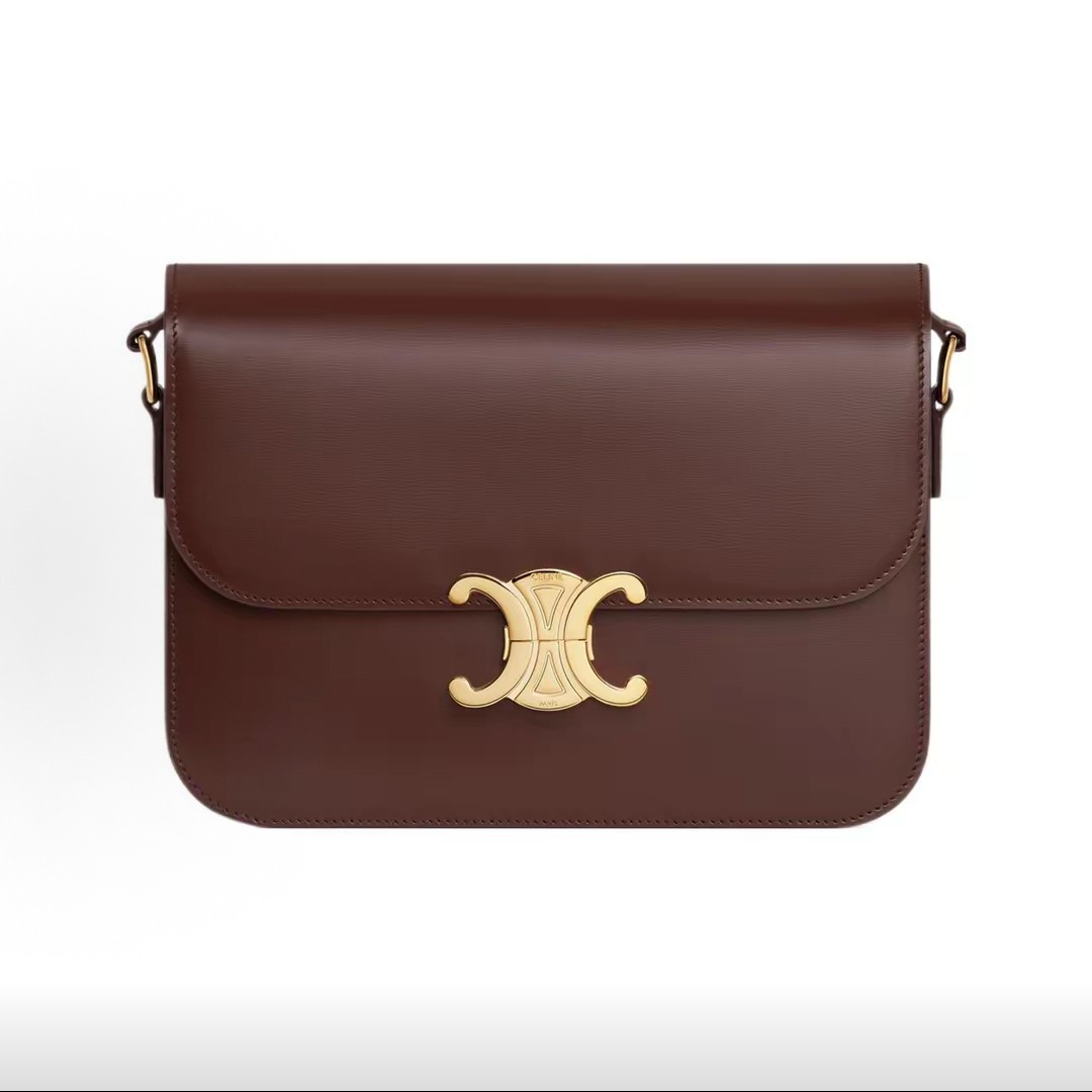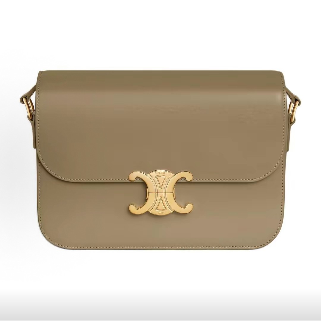 The inspiration comes from the classic CELINE logo from the 1970s and the elegance of the Left Bank of Paris. The square flip-top shape has no unnecessary decorations, and the lines are sharp. The front only features the Triomphe metal buckle as the visual focal point, without large printed logos. It is low-key and elegant.