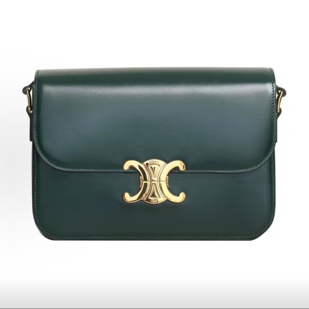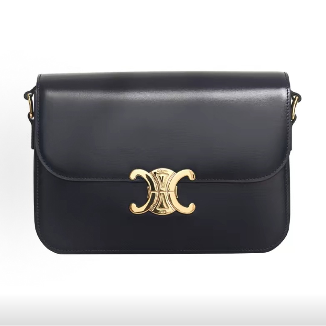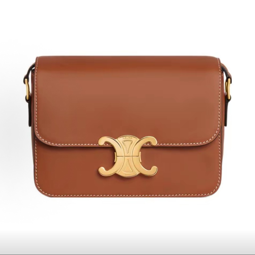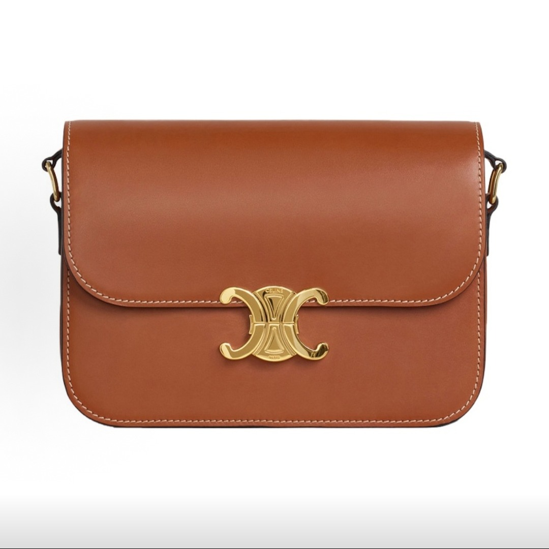 The inspiration comes from the classic CELINE logo from the 1970s and the elegance of the Left Bank of Paris. The square flip-top shape has no unnecessary decorations, and the lines are sharp. The front only features the Triomphe metal buckle as the visual focal point, without large printed logos. It is low-key and elegant.