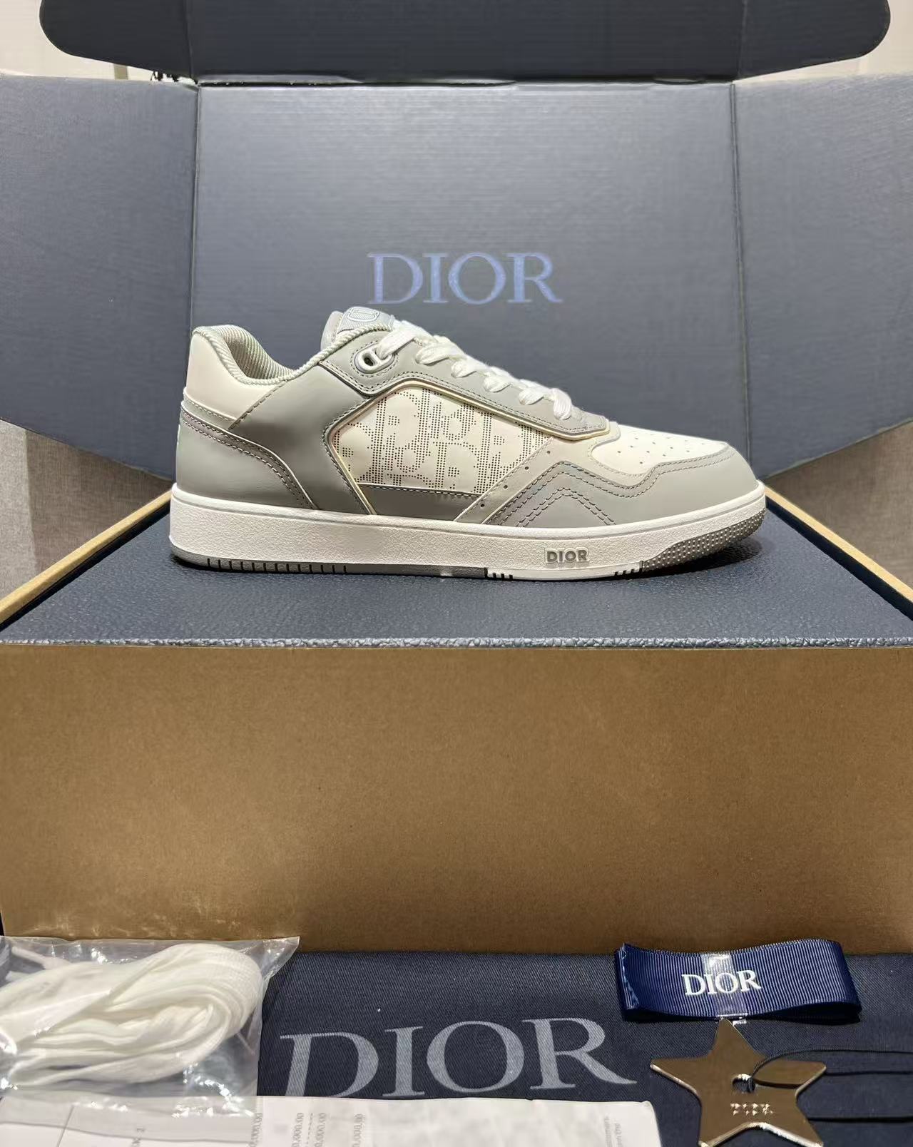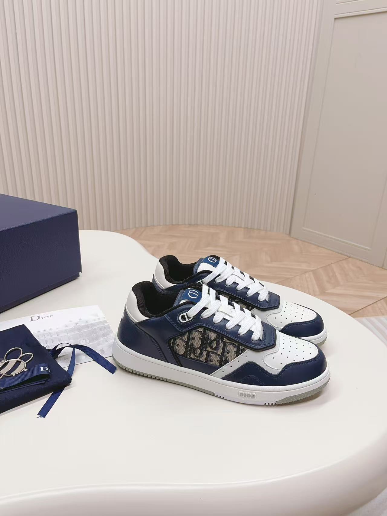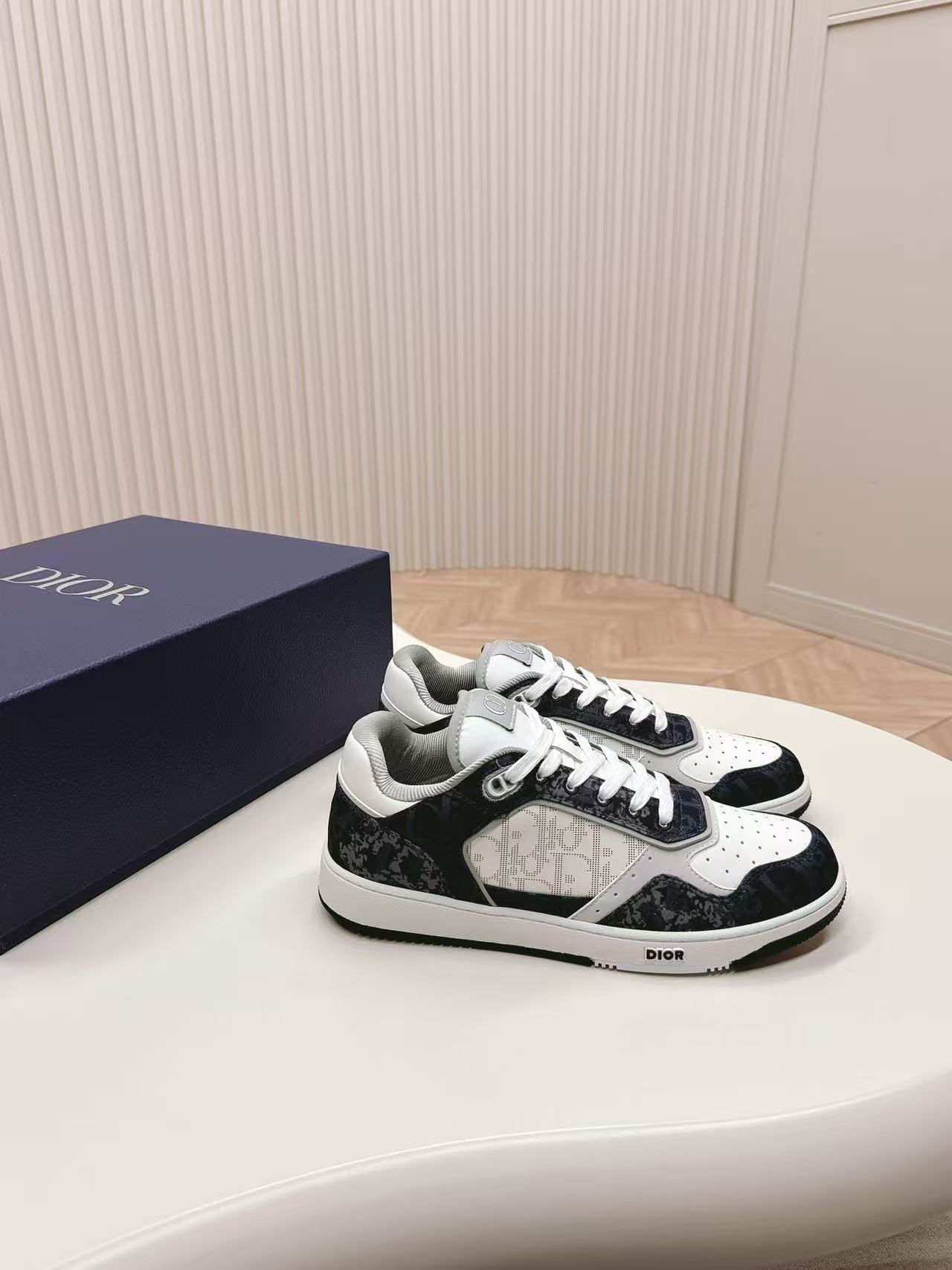 🧵 Premium full-grain leather upper paired with the iconic Dior Oblique jacquard fabric, creating a textured, layered effect