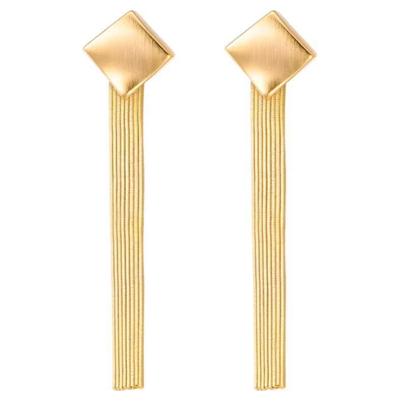 Be the first to review “Fashion High Sense star same style brushed geometric long tassel niche earrings earrings popular”
