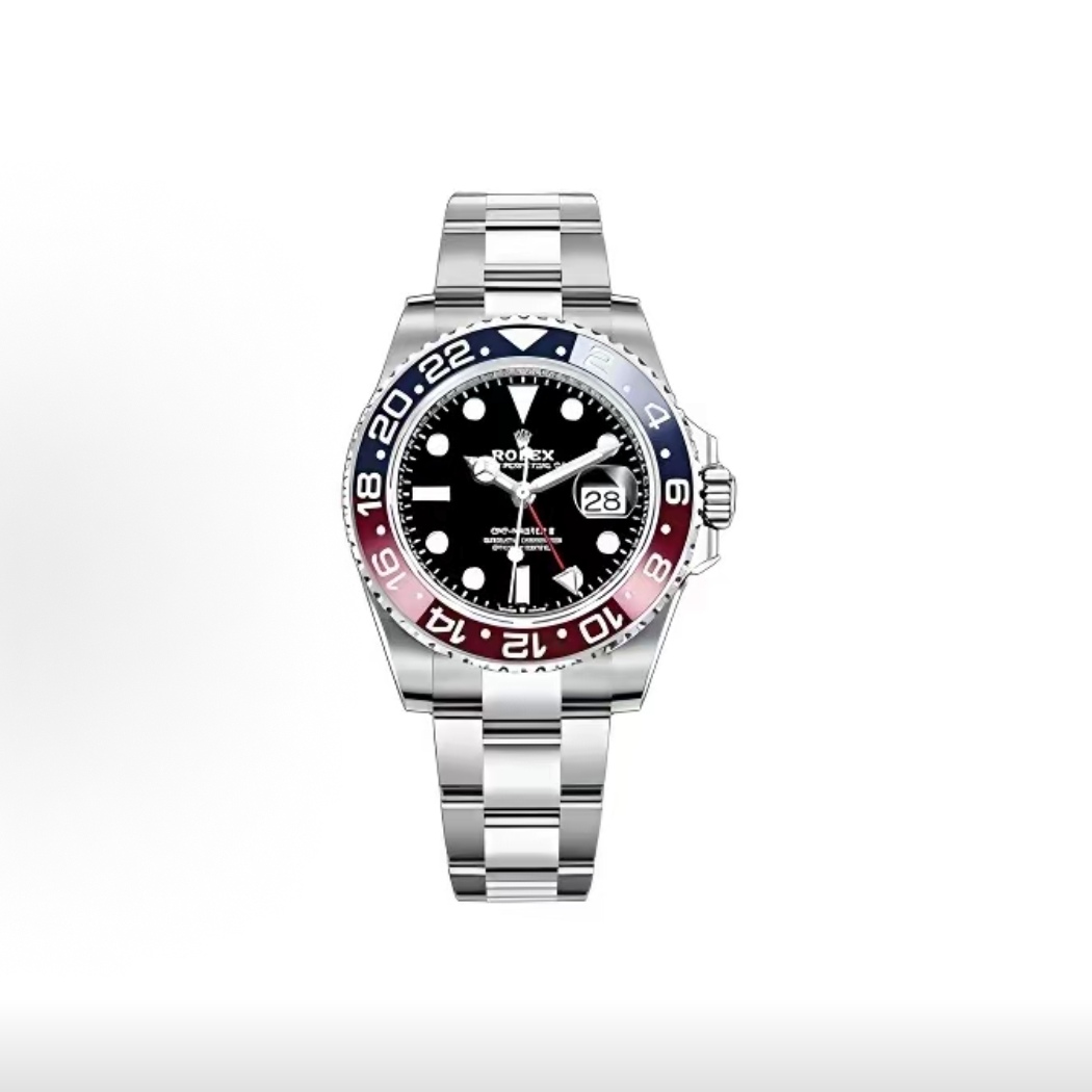 The Rolex GMT-Master II 126710GRNR (commonly known as “Bruce Wayne / Bruce Wayne”) is a classic dual-time wristwatch launched by Rolex in 2024. It features a black and gray dual-color Cerachrom ceramic bezel, 904L and Cal. 3285 movement. It combines professional functions, durability and a low-key yet luxurious appearance, making it a popular choice for global travelers and watch collectors.